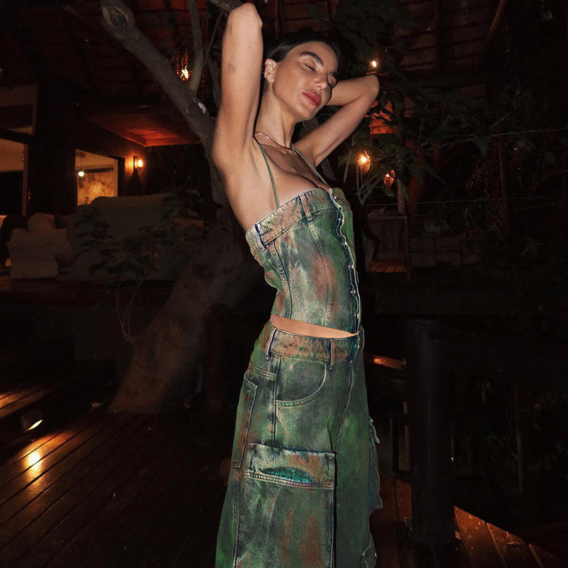 Retro Color Blooming Multi-pocket Loose Cargo Denim Trousers